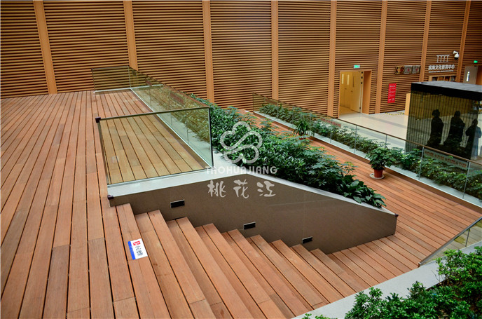 濱海新區(qū)文化中心項目中的市民活動中心區(qū)域采用桃花江戶外防腐竹地板。竹材深厚的文化底蘊與其優(yōu)異自然環(huán)保的性能一直是文化場館建設(shè)材料。
